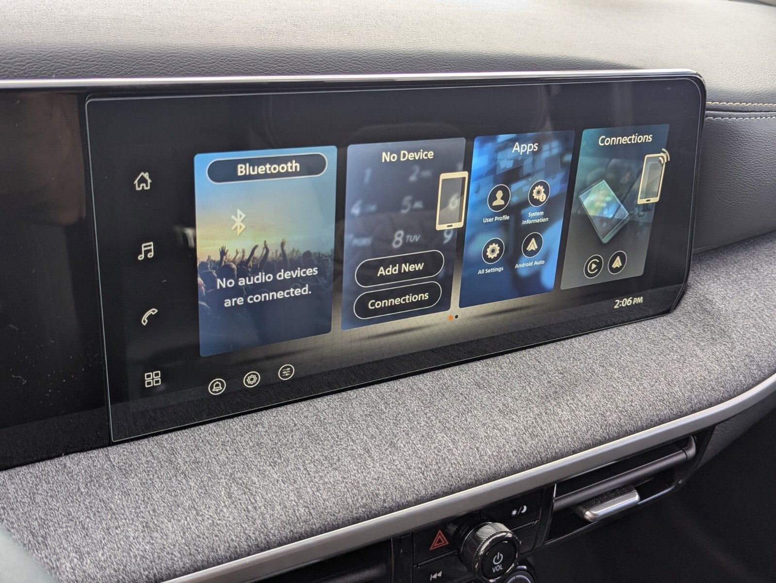 - Radio: AM/FM/SiriusXM Audio System -inc: 12.3" color touchscreen display w/4 speakers, Bluetooth® hands-free phone system, streaming audio via Bluetooth®, NissanConnect featuring wireless Apple CarPlay, wireless Android Auto, Siri eyes free and hands-free text messaging assistant, audio and Bluetooth® steering wheel switches