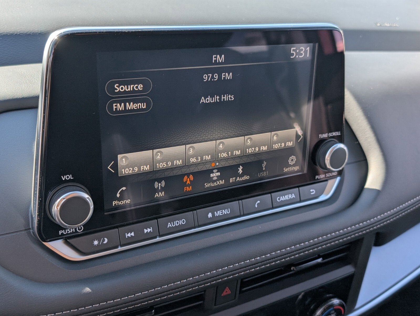 - Radio: AM/FM NissanConnect -inc: 6 speakers plus 2 tweeters, Apple CarPlay, Android Auto, 8" color touch screen display, Bluetooth®, 2 front USB type-C, Wi-Fi hotspot and NissanConnect Services powered by SiriusXM