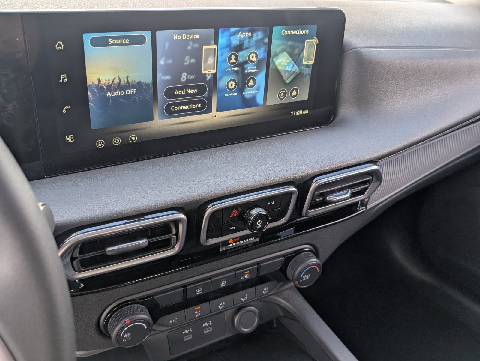 - Radio: AM/FM w/RDS/MP3 -inc: 4 speakers, 12.3" NissanConnect multimedia center display, Bluetooth® hands-free phone system, streaming audio via Bluetooth®, hands-free text messaging assistant, Siri Eyes Free, Google Assistant voice recognition, Apple CarPlay, Android Auto and (2) front USB connection port (type C)