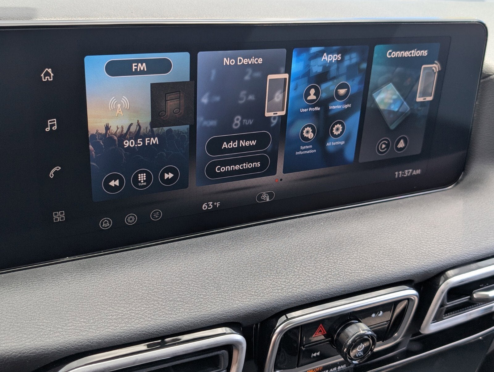 - Radio: AM/FM w/RDS/MP3 -inc: 4 speakers, 12.3" NissanConnect multimedia center display, Bluetooth® hands-free phone system, streaming audio via Bluetooth®, hands-free text messaging assistant, Siri Eyes Free, Google Assistant voice recognition, wireless Apple CarPlay and Android Auto and (2) front USB connection port (type C)