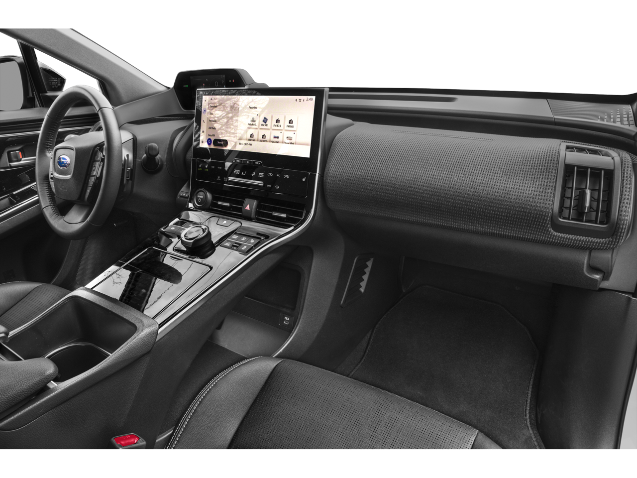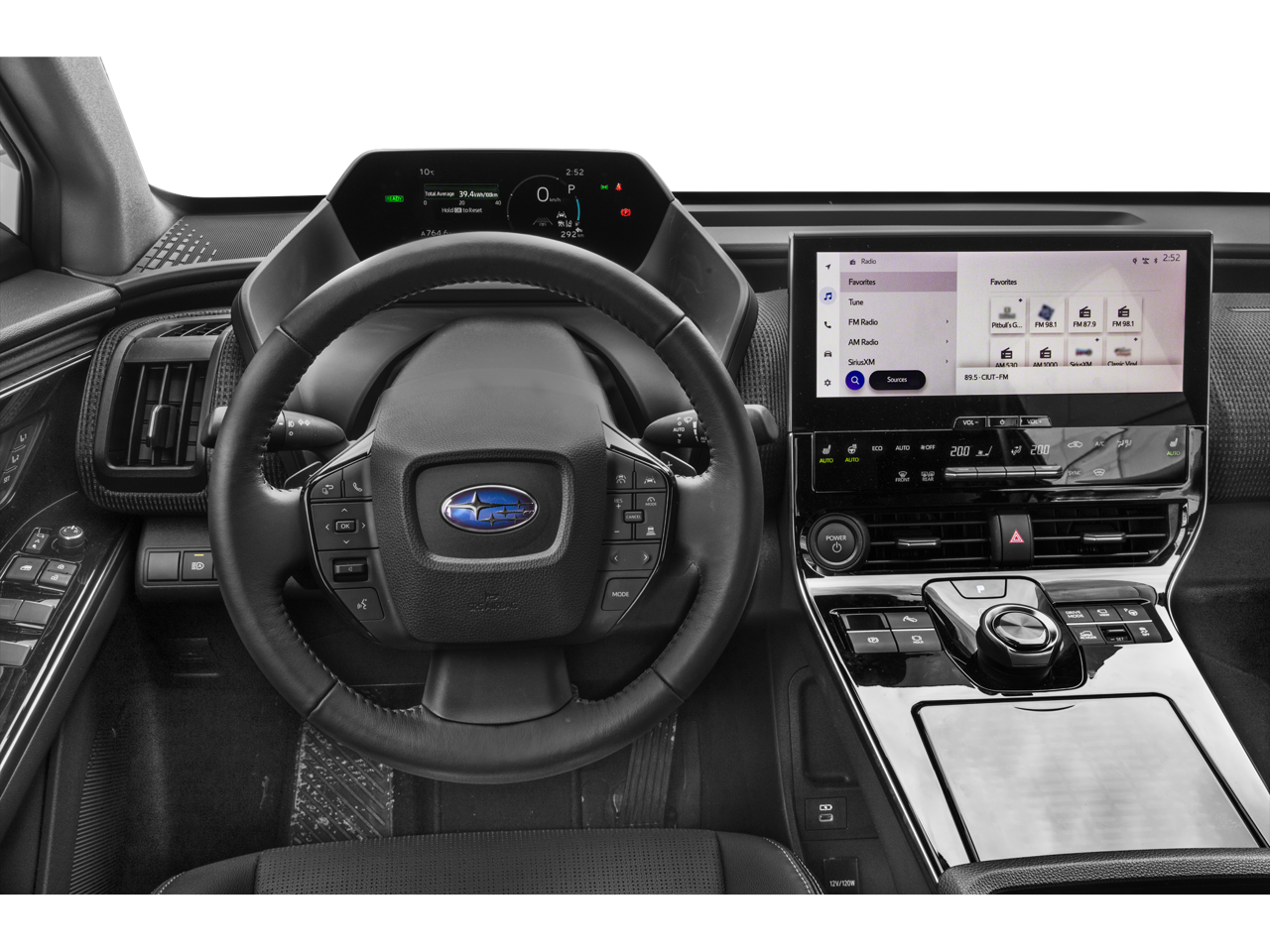 - Radio: Subaru Solterra Connect 12.3" Multimedia System -inc: navigation system (navigation subscription required), AM/FM HD radio, Bluetooth® audio streaming and hands-free phone connectivity w/SMS text messaging (refer to subaru.com for cell phone compatibility), SiriusXM all access radio (4 months free trial included/subscription required after), Android Auto, Carplay and harman/kardon 11 speaker system w/576 watt equivalent maximum output amplifier, multi-touch gesture high resolution display screen, Near Field Communication (NFC), Subaru Solterra Connect intelligent assistant includes dual-zone voice control system w/driver and passenger headliner microphone, steering wheel talk switch, cloud navigation operation, integrated steering operation (subscription required), USB/Over The Air (OTA) audio system updates, USB/Map Over The Air (MOTA) navigation system updates, steering wheel control switches for audio system and Bluetooth®, USB A input/charge port and illuminated dual USB C input/charge port