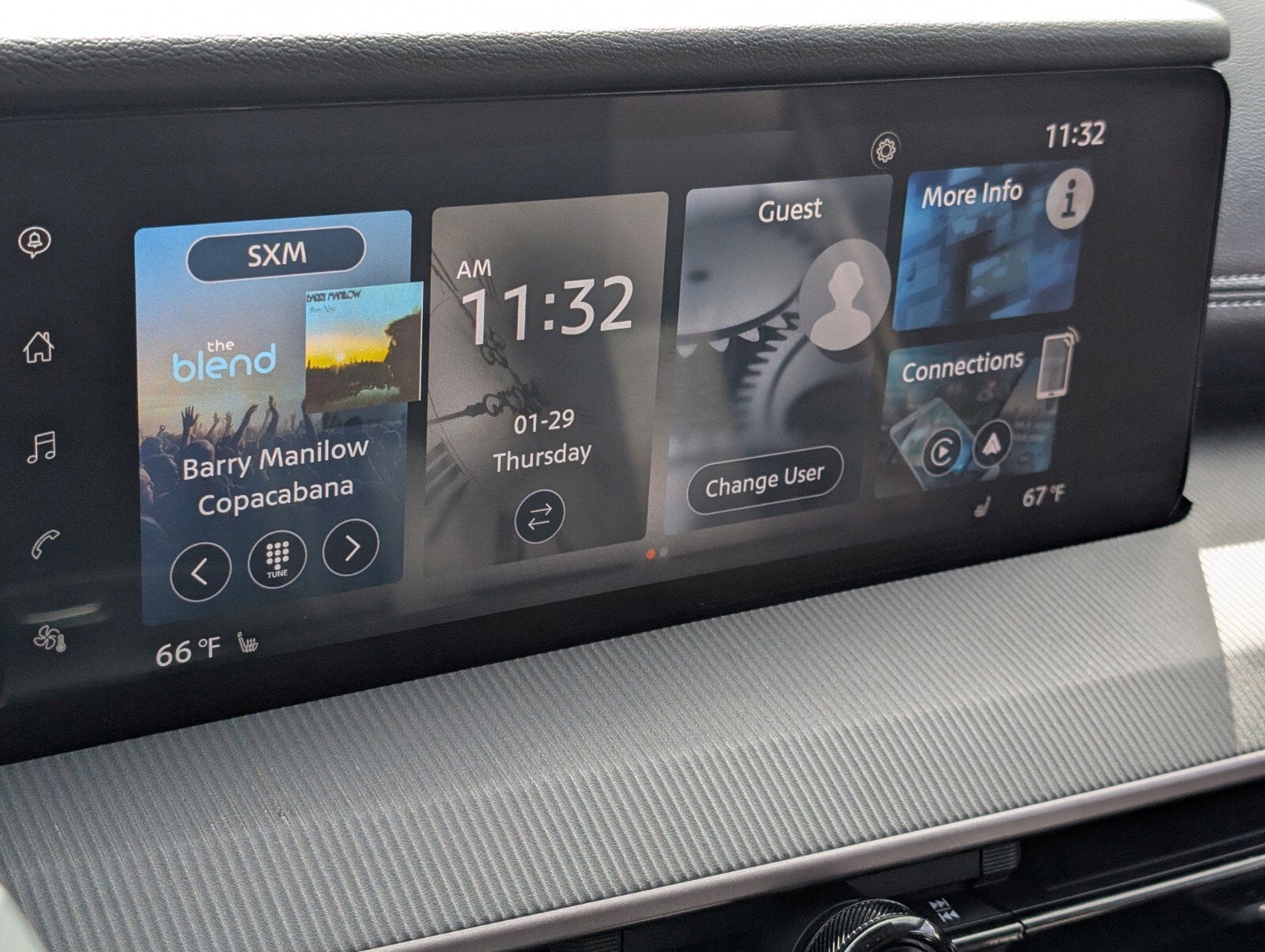 - Radio: NissanConnect -inc: 6 speakers (2 A-pillar, 2 front door, 2 rear door), 12.3" color touch-screen display, wireless Apple CarPlay, wireless Android Auto and 2 front and 2 rear USB type-C charge and data